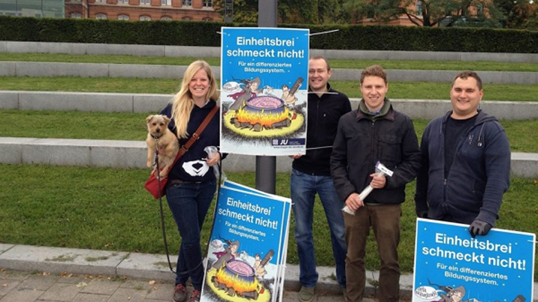 Zu der Aktion erklärt die bildungspolitische Sprecherin der Jungen Union Schleswig-Holstein, Hannah Wadephul: „Die Bildungsministerin ist mit ihrem Gesetzentwurf auf dem besten Weg zu einer Einheitsschule. Durch die Schwächung der Gymnasien, die durch die Einführung von G8 erfolgt, und die Abschaffung der Regionalschulen stärkt Frau Prof. Dr. Waltraut „Wara“ Wende die Gemeinschaftsschulen. Es werden verstärkt Oberstufen an Gemeinschaftsschulen gegründet, an denen man nach 9 Jahren das Abitur absolvieren kann. An diesen Schulen wird in binnendifferenzierter Form unterrichtet, sodass viele Schüler unterschiedlichster Leistungsniveaus in einer Klasse gemeinsam lernen. Hierbei kann nicht sichergestellt werden, dass alle Schüler gemäß ihrer Fähigkeiten und Begabungen gefördert und gefordert werden. Diese Anforderungen kann nur ein differenziertes Schulsystem erfüllen.