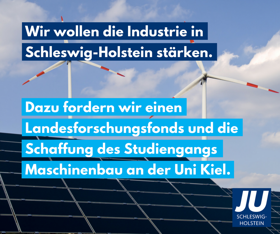 Auf dem Schleswig-Holstein-Rat in Lübeck, an dem über 80 Delegierte und Gäste teilgenommen haben, hat die Junge Union Schleswig-Holstein ein Positionspapier zur Industriepolitik beschlossen. Der Veranstaltung war die JU-Summer School vorangegangen, auf der in mehreren Workshops mit verschiedenen Referenten von der Industrie- und Handelskammer, aus der Politik und aus Unternehmen das Positionspapier erarbeitet worden ist. Dazu erklärt der Landesvorsitzende der Jungen Union Schleswig-Holstein Tobias Loose: