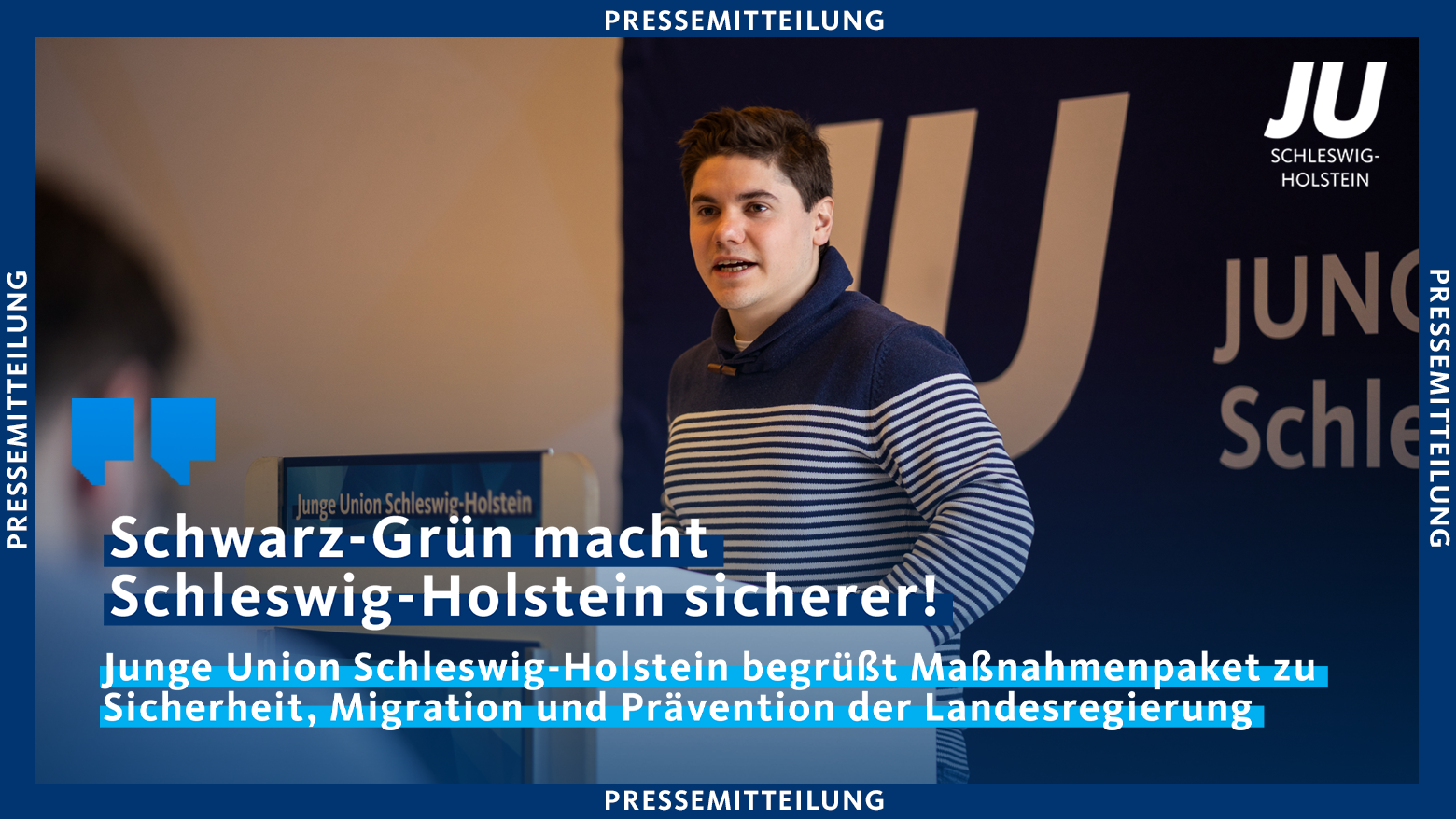 Zur Regierungserklärung über das Maßnahmenpaket Sicherheit, Migration und Prävention der Landesregierung erklärt der Landesvorsitzende der Jungen Union Schleswig-Holstein, Felix Siegmon: „Es ist eine Kernaufgabe des Staates, die Sicherheit der Bürgerinnen und Bürger zu gewährleisten. Es muss leider festgestellt werden, dass das Sicherheitsempfinden der Menschen in ganz Deutschland abgenommen hat und das Vertrauen, so zeigen es die Wahlen ist Ostdeutschland deutlich, in staatliche Institutionen sinkt. Bürgerinnen und Bürger erwarten von der Politik zu Recht, dass in den Bereichen Sicherheit und Migration gehandelt wird. Dabei müssen Bund und Länder intensiver zusammenarbeiten. Schleswig-Holstein und Nordrhein-Westfalen haben hier ein vorbildliches Beispiel gesetzt.“
