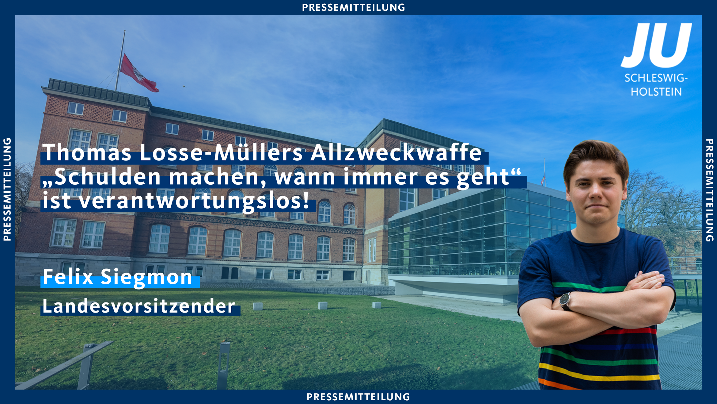 Dazu äußert sich Felix Siegmon, neuer Landesvorsitzender der Jungen Union Schleswig-Holstein: „Thomas Losse-Müller will in Schleswig-Holstein retten, wo die Bundes-SPD und allen voran der Bundeskanzler Olaf Scholz in Berlin auf ganzer Linie versagen. Warum sollte der Schleswig-Holsteinische Landtag einen Beschluss fassen, der erstens in Bundesverantwortung liegt, zweitens von der aktuellen Regelung zur Schuldenbremse eh schon abgedeckt ist und drittens bereits im März eine Aussetzung dieser zur Bewältigung der Krise beschlossen wurde? Die Schuldenbremse darf nicht leichtfertig ausgesetzt werden. Thomas Losse-Müllers Allzweckwaffe "Schulden machen, wann immer es geht“ ist verantwortungslos und wurde zurecht von CDU und den Grünen heute abgelehnt. Die Junge Union Schleswig-Holstein steht für generationengerechte Haushaltspolitik mit Maß und Mitte, nach der die Aussetzung der Schuldenbremse nur als ultima Ratio zur Bewältigung Notsituationen, die unmittelbare Auswirkung auf den Landeshaushalt haben, möglich ist."