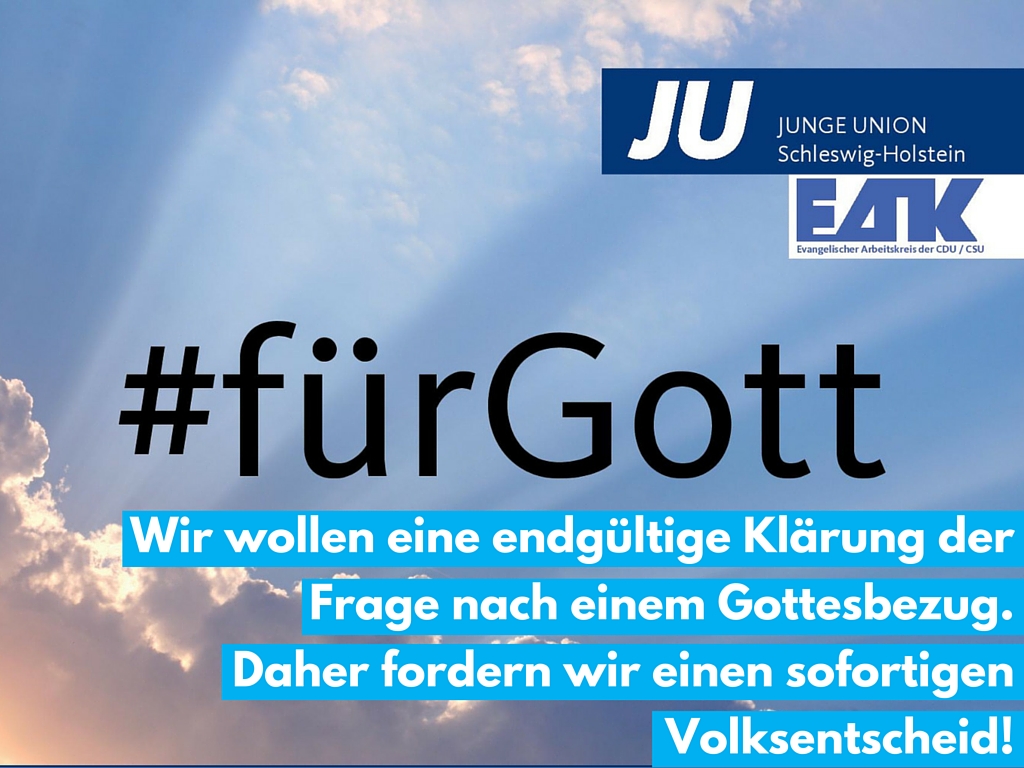 Wir fordern eine endgültige Klärung der Frage nach einem Gottesbezug. Daher fordern wir einen sofortigen Volksentscheid zum Gottesbezug in der schleswig-holsteinischen Landesverfassung.“